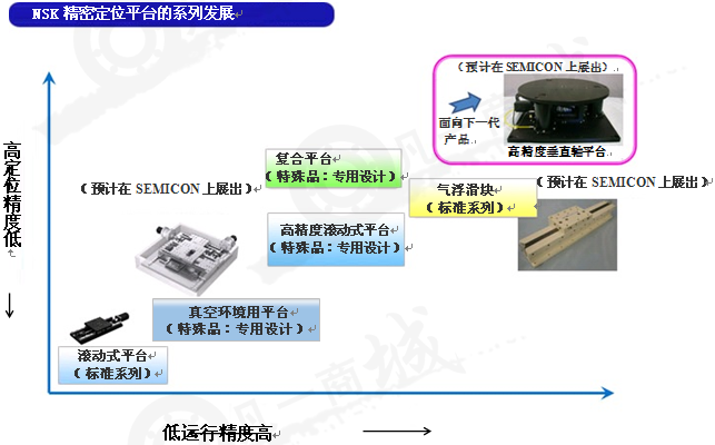 迄今,NSK已成功開發出定位平臺高性能化所需要的關鍵零部件。