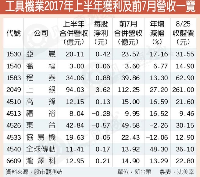工具機(jī)接單持續(xù)好轉(zhuǎn),反映在下半年及獲利上,亞崴、程泰、上銀科技(hiwin)及東臺等大廠訂單能見度雖看到年底甚至明年首季,仍以集團(tuán)型態(tài)參加9月18日在德國漢諾威登場兩年一度歐洲工具機(jī)展?fàn)幦∮唵危鎏頎I運(yùn)動能。