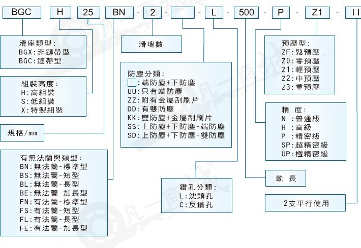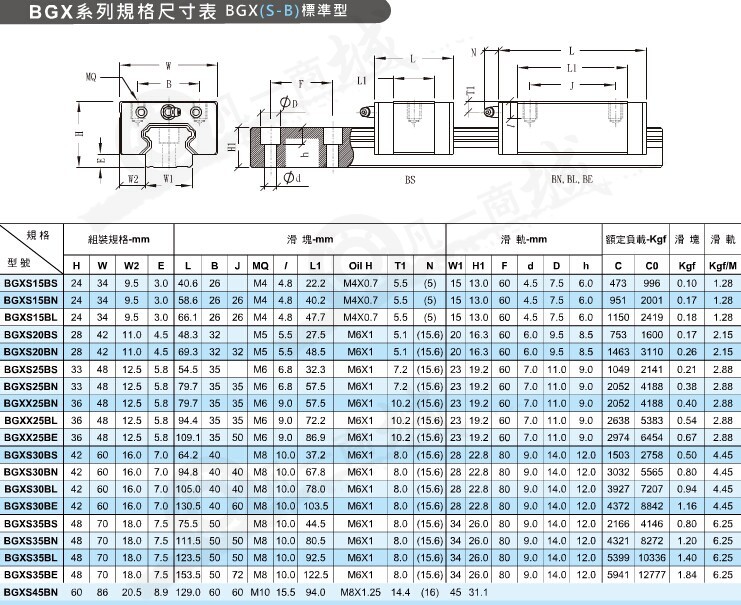 BGX線性滑軌鋼珠循環(huán)中使用了高分子聚合物作為循環(huán)路徑,僅留下滑座與滑軌需要與鋼珠做精密配合的軌道,使鋼珠產(chǎn)生尖銳聲響的機(jī)會(huì)大幅度下降。