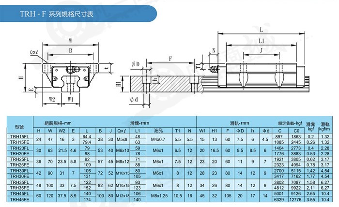 TBI直線導(dǎo)軌為一種滾動(dòng)導(dǎo)引,借由鋼珠在滑塊與滑軌之間作無(wú)限滾動(dòng)循環(huán),負(fù)載平臺(tái)能沿著滑軌輕易地以高精度作線性運(yùn)動(dòng)。與傳統(tǒng)的滑動(dòng)導(dǎo)引相較,滾動(dòng)導(dǎo)引的摩擦系數(shù)可降低至原來(lái)的1/50,由于起動(dòng)的摩擦力大大減少,相對(duì)的較少無(wú)效運(yùn)動(dòng)發(fā)生,故能輕易達(dá)到μm級(jí)進(jìn)給及定位。再加上滑塊與滑軌間的束制單元設(shè)計(jì),使得直線導(dǎo)軌可同時(shí)承受上下左右等各方向的負(fù)荷,上述陳列特點(diǎn)并非傳統(tǒng)滑動(dòng)導(dǎo)引所能比擬,因此機(jī)臺(tái)若能配合滾珠螺桿,使用直線導(dǎo)軌作導(dǎo)引,必能大幅提高設(shè)備精度與機(jī)械效能。