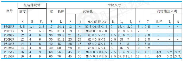 NSK導軌型號:PE05、PE07、PE09、PE12、PE15、P1E05、P1E07、P1E09、P1E12、P1E15