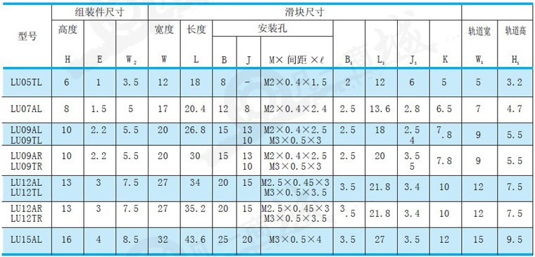 NSK直線導軌型號:LU05TL、LU07AL、LU09AL、LU09TL、NSK LAW21ELLU09AR、LU09TR、LU12AL、LU12TL、LU12AR、LU12TR、LU15AL、LU09BL、LU09UL、LU12BL、LU12UL、LU15BL