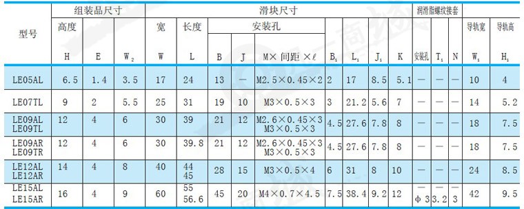 NSK導軌型號:LE05、LE07、LE09、LE12、LE15、L1E05、L1E07、L1E09、L1E12、L1E15NSK  LAW21EL