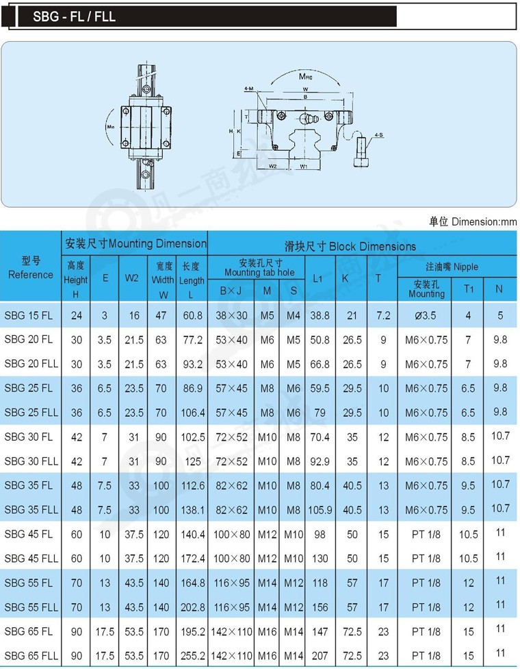 3.安裝簡單 只需通過螺栓安裝,SBC導軌就可以保持高精度,并 在四個方向上承受等量負載。