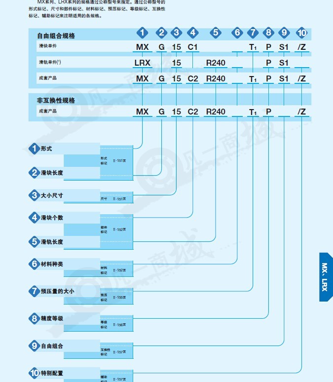 IKO直線導軌LRX系列可發揮最高滾動導向性能的圓柱滾子型直線導向設備:該系列IKO直線導軌是最大限度發揮圓柱滾子的優異特性,使承載負荷、剛性、摩擦特性、行走精度等各個方面的特性都達到最高性能的直線導向設備。IKO直線導軌C-Lube自潤滑、免維護LRX系列,滿足多樣需求的豐富產品群滑塊以法蘭型為主,還有截面高度低的低斷面法蘭型、低斷面方塊型等5種類型,滑塊長度在相同的截面尺寸下有4種不同的類型,用戶可根據機械、裝置的規格選擇最合適的IKO直線導軌。
